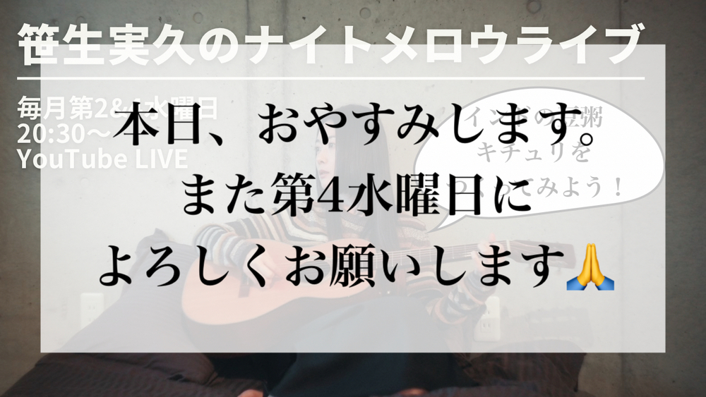 本日のYouTube LIVE おやすみのお知らせ おみくちゃん日記 #YouTube Miku Sasao Official Fan Site 2026/03/11 13:22 フォロー 本日の夜予定しておりました定期YouTube LIVEですが、友人が亡くなったため、やすませてください。 また次回、第4水曜日に、お会いできることを楽しみにしております。 URLをコピーする 報告する