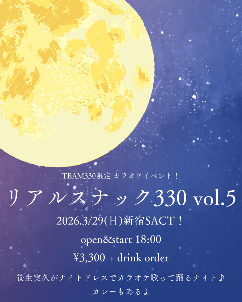 このイベントは、TEAM330限定で毎月配信しているカラオケを、実際リアルイベントでやるよ!という日です◯