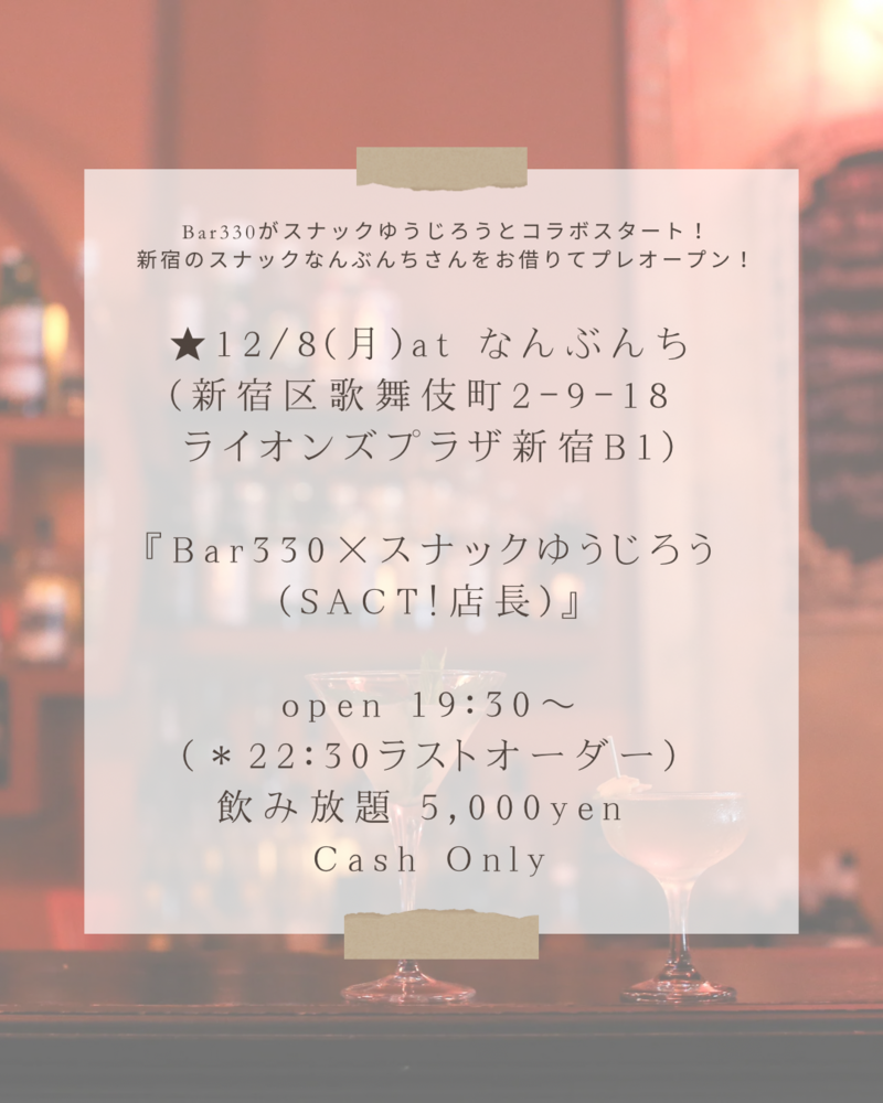 12/8(月)『Bar330×スナックゆうじろう(SACT!店長)』